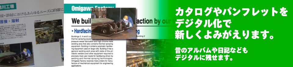作成されたデータは、以前のカタログなどが元になっていますので写真など、少し劣る場合があります。文字も同じ書体ではありません(できるだけ近い書体を使用します)、写真をレタッチしたり修正する場合がありますので、全く同じものができあがるわけではありません。しかし、これから新しく作成するより、コストを下げることができます。